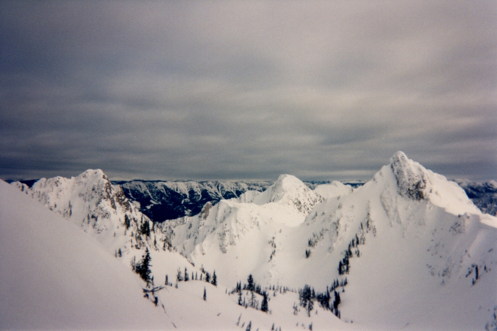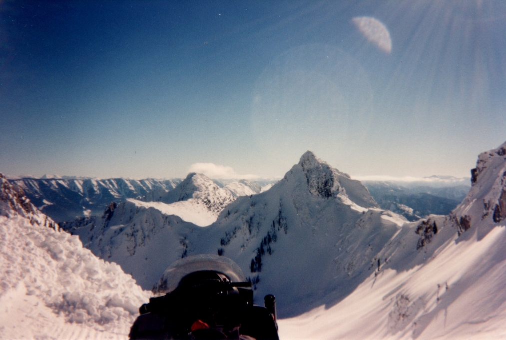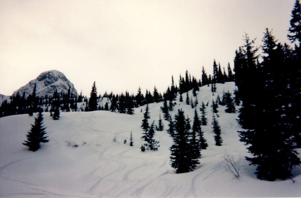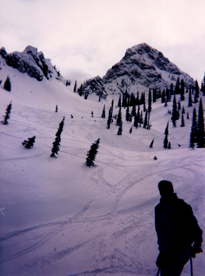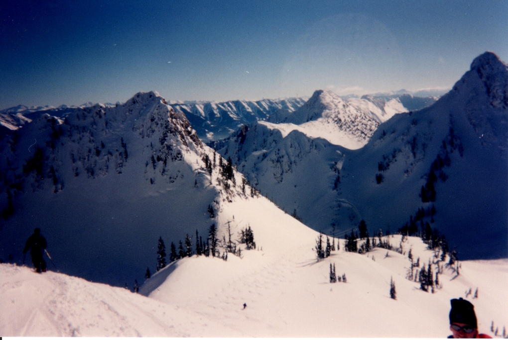 On Leslie's recommendation, for my first ski trip to interior British Columbia in 1997 I signed up for a guided road trip with Ski Plus Tours. Lead guide Brad Karafil operated on a flexible schedule following weather patterns to choose resorts and also utilizing personal contacts to arrange occasional snowcat or heliski days. I was on my own, and to my dismay the rest of the group cancelled just two weeks ahead due to a family emergency. I already had a week of vacation and air tickets to Spokane, so I got on the phone and was very fortunate to get a spot for my first three days at Island Lake Lodge. I rented a car and skied Fernie, Whitewater and Red Mt. the rest of the week.