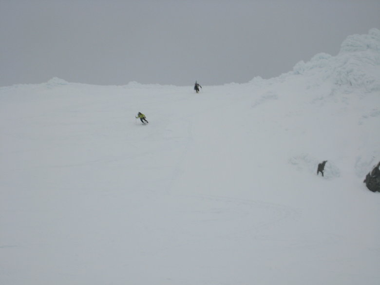 scraped snow on the 40 degree pitch. It is one of those situations where you think a lot about that first turn but after